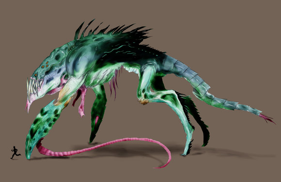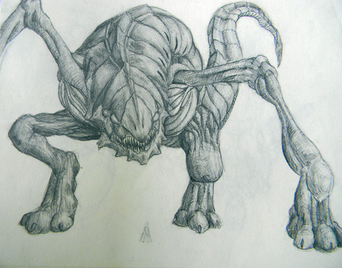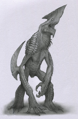 Haha yeah, but again, I don't really know what I did here. I guess this creature is just a mix up of influences. It looks like a xenomorph mainly because of the human anatomy plus tail and elongated head, which is basicly the same structure of a Xenomorph. But this one is more reptilian, more organic, Giger's style is very biomechanic. That's why it looks also like a dragon, it's made by scales and claws and not by tubes and metallic parts.. I don't know what it breaths though, perhaps candy
