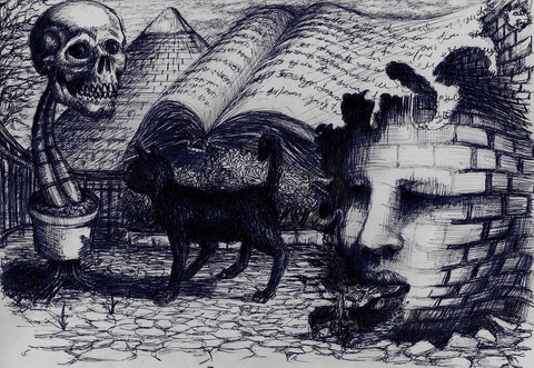 Ehm.. I'd have liked to finish it for good, but I've spent way too much time on this piece of paper and I'm quite sick of it.. It's messy, it's incomplete, and so it will be forever.I don't even know if it means something, as usual I started drawing an eye and then the rest happened.