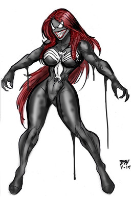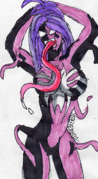 She is my favorite Symbiote,I'm triyng to draw her with an Oc,I serached images of her in Google,her eyes are the strange fact...and I lost(Here or in my school,I dont remember) a cream lavander pencil when I was young.