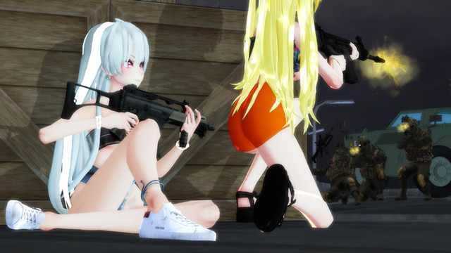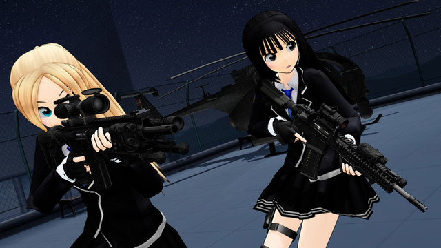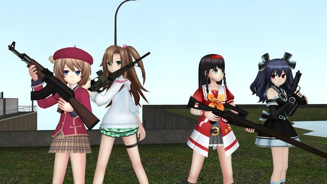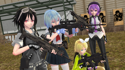 On a sidenote, I forgot to adjust the index finger of the pink twintail girl to go into the AK74's trigger. Oh well.