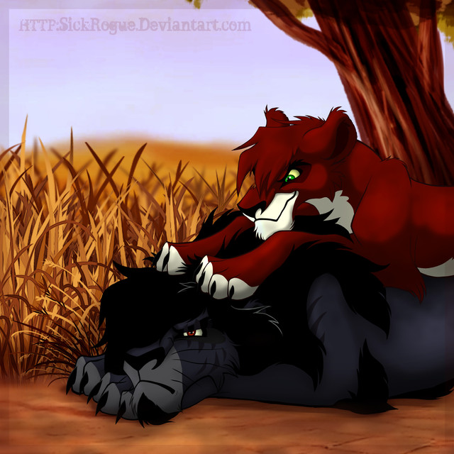 Warum? Die machen doch nix! Scar beugt sich ein bisschen über sie drüber, aber sein Becken ist an keinem Bereich wo's obszön wäre!