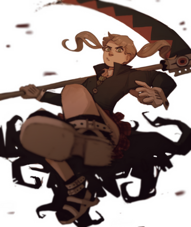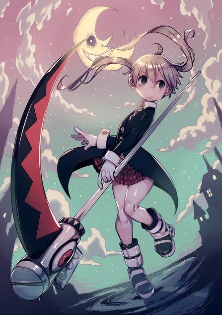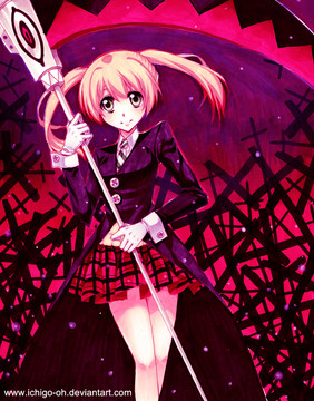 this is the only pic i found that i could sow my dad the anime character I wanted to be for Halloween and her scythe. I GET TO BE MAKA! minus the boots. but i get to make soul as a scythe! i already have the hair to be maka.