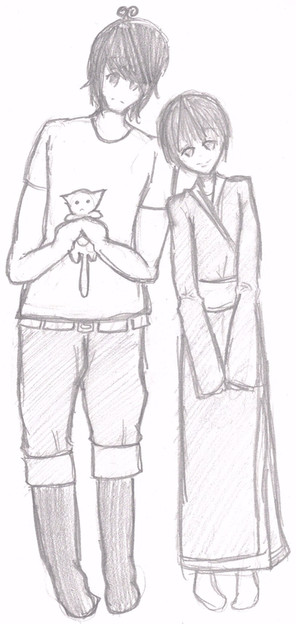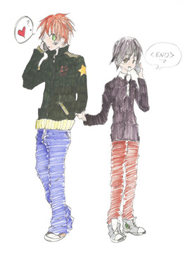 The twins of Lord of the Flies, based in the How To Enjoy a Date Properly AU, except a couple years older.Name: Sam (seated)