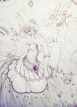 I love the weaving between her hair and the plants/designs