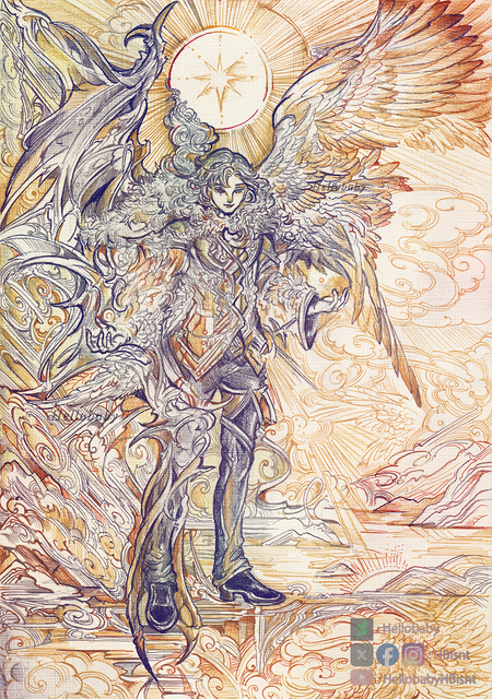 That was clever of you to include his face when he transformed it gives a good contrast.Β And speaking of his face I love how you drew his normal face, he's so handsome in your style!Β Great job with his clothes and feathers too.