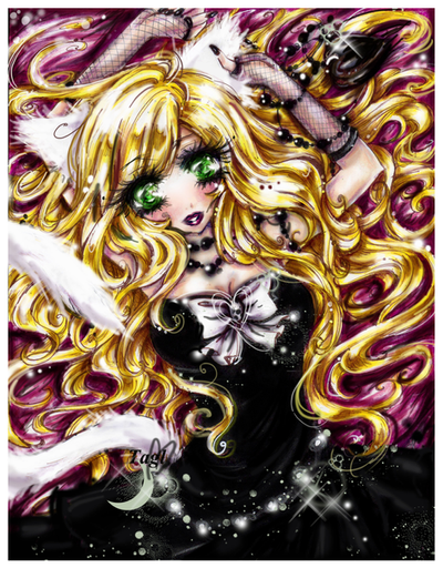 She just want a drawing of a cat so I draw my character with cat. Sorry but I am not good with cat drawing .