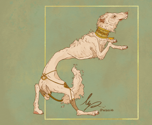 OC re-design I've been planning for a while! An ominous and partially blind azawakh. Pretty much the only creature that can tolerate Anri's personality lol.Artwork, character (Baum) ©HelloFrith