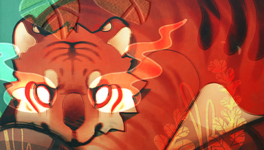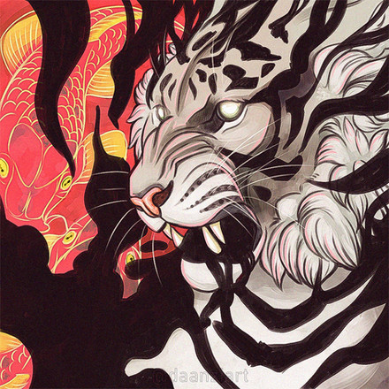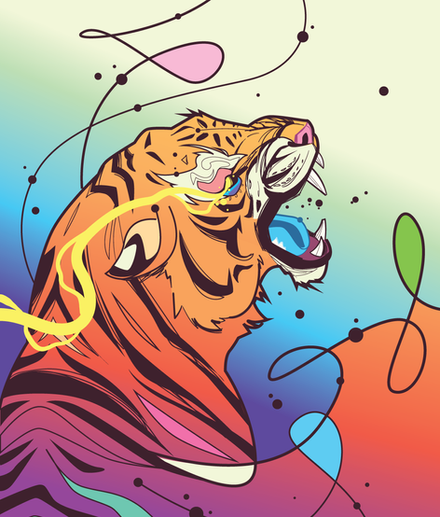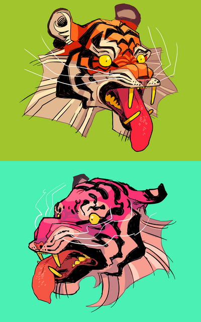 this one the tiger is screen printed and the background is paint :U