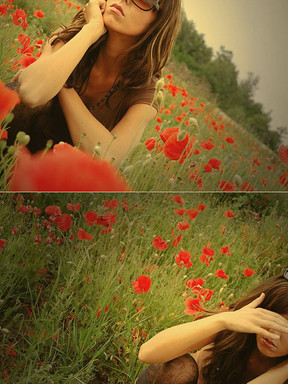 I'm curious to why it is called Assassin. Beautiful piece, regardless, with the colors and its nice how the girl is the same height as the flowers. The colors are wonderful, and there is that almost-vintage touch to it.