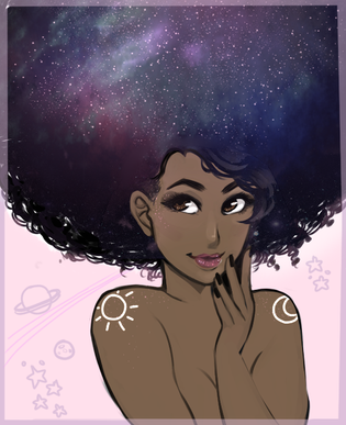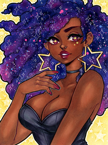 I love galaxy art. You did a wonderful job on this! I especially love her hair, and how you blended her skin tones.