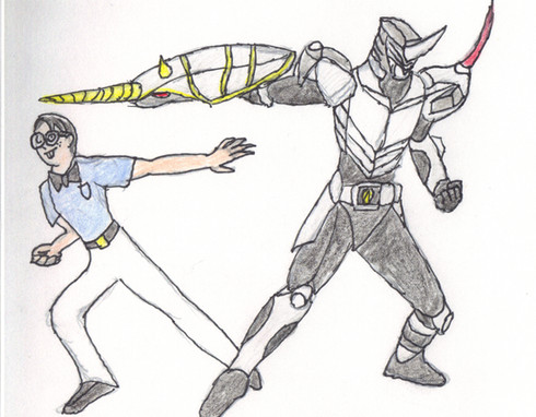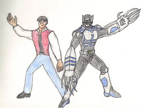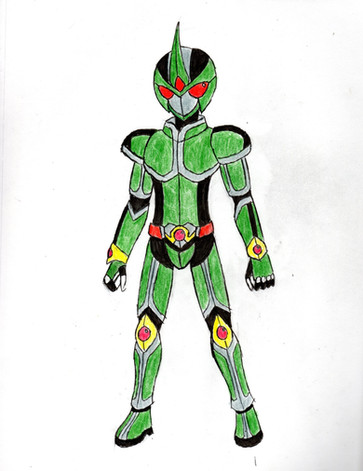 Well it took a while, mostly because I was working on a new chapter for my story. I now present Masked Rider Zolda with his human counterpart Matthew Skulker. I decided for Skulker to be black because his main voice actor was black and it seems to fit for Skulker to be black. The reason why he is Zolda is because Zolda is a long range combat Rider and Skulker tends to use many long range firearms. One of the most noticable things is that he has a gun called his Magna Visor with serves as his personal weapon and means to summon more weapons.His reason for being in the Rider War is actually more personal than the other Riders. He became a Rider to have revenge against Ouja for something that happened in the past.