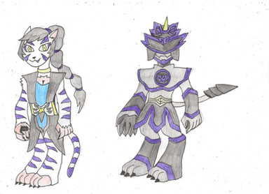 His contract monster is a humanoid white and blue striped tiger named Destwilder.