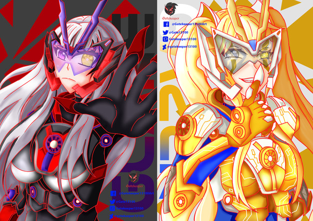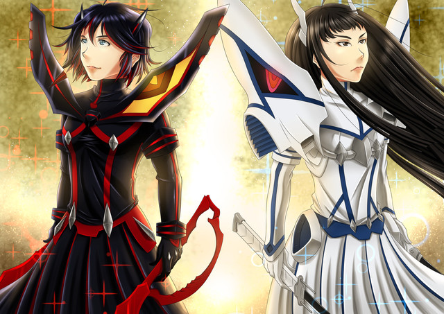 I'll be honest, I'm not ardently into KLK. In fact, it's a bit too...intense for my tastes and the anger and cathartics is quite on par with Attack on Titan. However, the show does a good job creating unique and enjoyable characters. Since I've recently gotten into Kamen Rider, I thought, why the hell not? The writer for KLK did Kamen Rider Fourze, so it's totally relevant! Anyway, here's Ryuko and Satsuki dressed as Kamen Rider Faiz and Psyga, since they're the closest to their respective Kamui. After all, compared to the other Riders series, 555 seemed to be the closest. In fact, I'll give Satsuki's VA all the money in the world to say "It's showtime!".Done as a commission by who's a fellow Rider fan.