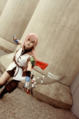 On to Lightning herself. The pose is just like something she'd strike and the look on Rosel's face reflects the determination that resides within Lightning and how she strives to fulfill her duties. The wig couldn't be any more perfect and the clothing is spot on to every last detail and the gunblade itself actually looks pretty real. And the effect on the cape itself is a nice addition too.