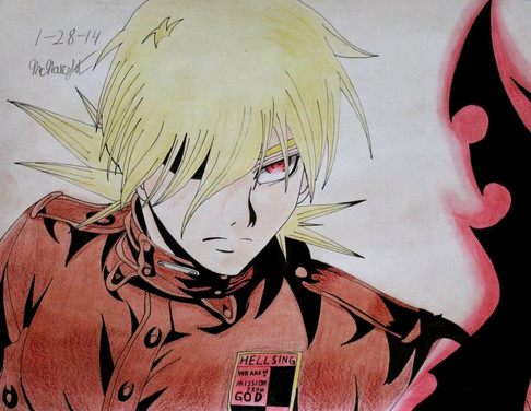 It's been a while since I uploaded another Seras piece of art. So here you go. I thought the red eye in a grey scale drawing would be interesting and I am pleased with the way this turned out. Plus this scene was one of my favorites with her blasting down the Zepplen heading towards Hellsing HQ.