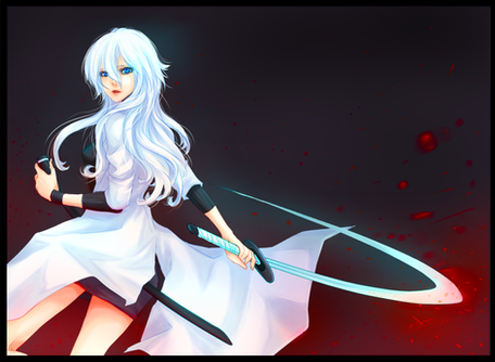 Yeni çıkan habere göre (ve kara no kyoukai sitesindeki kanjili şeye göre) 2 şubat 2011'de blu-ray versiyon ve ovasıyla birlikte bir kaç şey daha çıkıyor ve bu haberi duyduğum gibi KnK havasına girdim tekrardan. Aldığım gazı üzerimden atamayıp, minitokyo'daki scan'lerden birini baştan, farklı bir şekilde renklendirdim. Bi' de shiki'yle alakasız da olsa turkuaz parlayan kristalimsi şeyler koydum. Orjinal resimde gözleri normal halinde ama ben "ölümü gören gözler"i yapmayı tercih ettim. çizme göre göz bebeğini felan uydurmak kolay olmadı ama oldu işte eninde sonunda. Orjinalin de ayrı bir karizması var ama bana sorarsanız kendi yaptığımı daha çok beğeniyorum tabi.