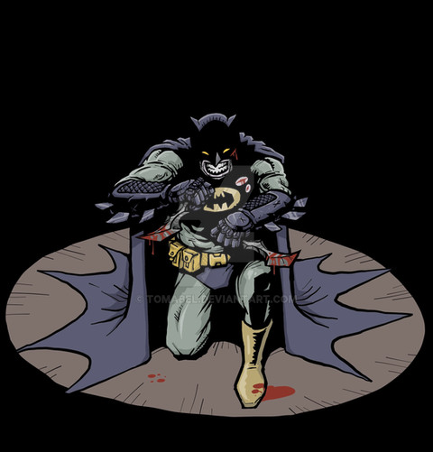 But Alfred could not console him or take his pain away. Deep in the bowels of Gotham Mansion Bruce screamed his rage against the world. A scarlet hunger tore his insides and he felt that his quest to avenge his parents had failed before it had even started. He wept and decided to destroy himself and the creature that he had become.