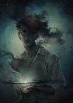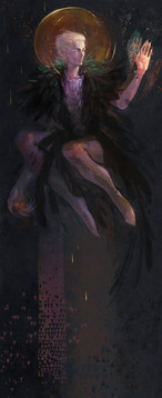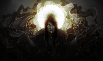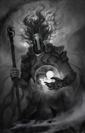 Very cool, I like the difference in form between the character and the environment the way he seems to be wading through the mire of spirits. Very impressive distinction it gives the character a lot of presence which adds to the feeling of a powerful mage of some sort.