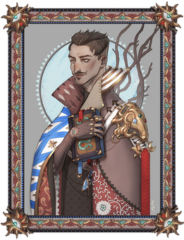 Love love LOVE the Art Nouveau thing you've got going on, and his outfit.