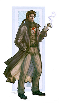 Add me to the chorus of ladies in love with him. Those boots and the coat are just gorgeous. I also really love seeing this kind of art-nouveau look. Amazing...