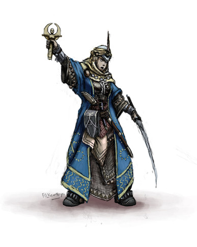 It is odd that a drawing this is not properly appreciated. The woman is warmly dressed, with gear appropriateΒ for travelling or adventuring, whereas most female adventurers seem to be headed for a bikini contest. She hasΒ a quiver of scrolls, a purse for coin, a satchel for assorted stuff, and has a no-doubt dungeon-relevant key in hand. Her overtunic marks her guild or academy and she seems to be wearing sensible shoes.
