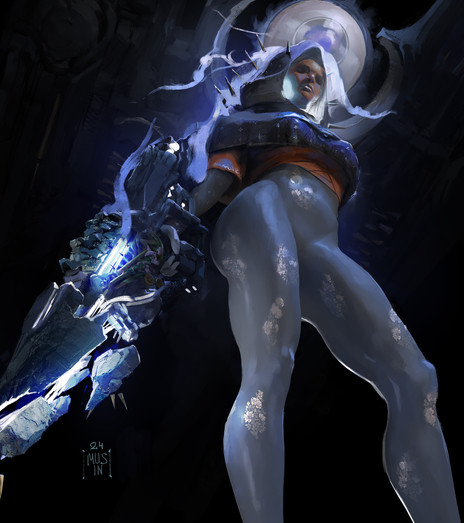 She's got an interesting colour scheme. I wouldn't have thought to use those dirty greys but it marries the gold with that white really well whilst grounding her character.
