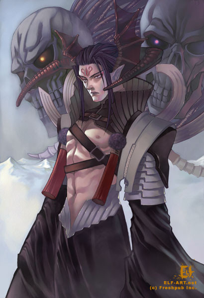 Nice mage-robe design. I also like that his arms gradually turn to grey/blue.