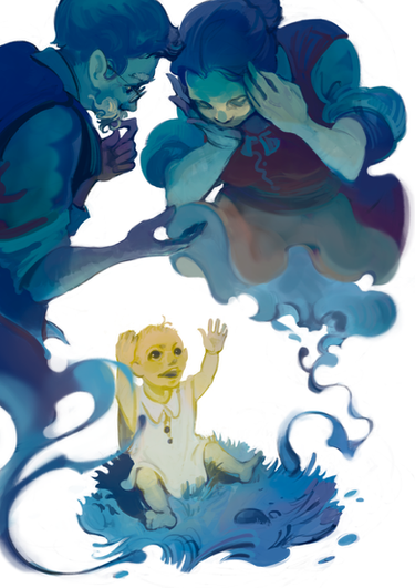 omg that's hilarious! I like the composition a lot! The expression on the baby's face is priceless XD