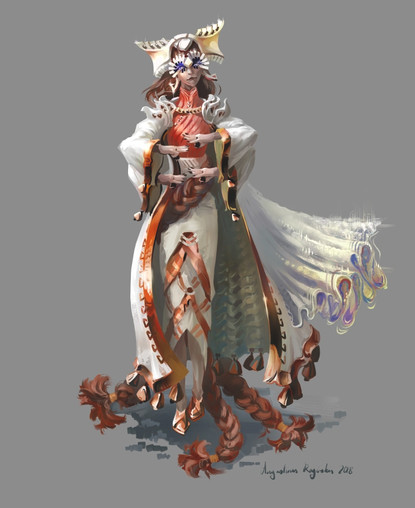 This is a cool character design. I love the subtle gold trimming on the outfit.