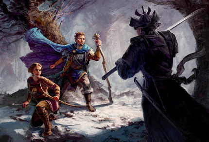This is a fabulous piece Love the details in the clothing and the glowing behind the masks of the enemies!