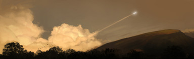 Looks like a picture taken the exact moment when the carefully set up camera refocusses due to the intense glare of the engines.