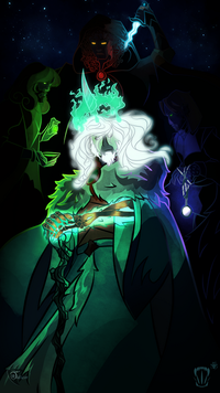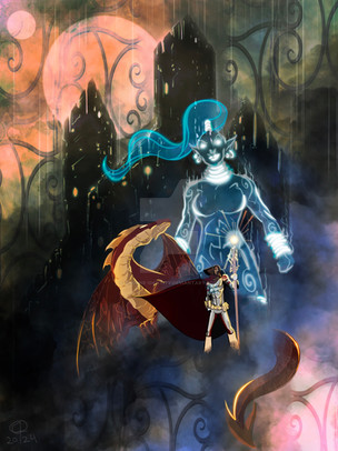 I'm always attracted to works like this, which portray fantasy worlds. I really like that you described a few things on the image; the writing is well placed in the picture, giving some kind of enigmatic feeling. I like how you blended the borders of the two realms, and the symbols put in the corners of the picture.