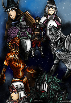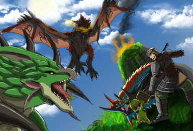 >.< rathalos: " hey! only four can hunt at a time!!...thats the rules", but sadly no one listened , the rathalos was slaughterd and was delicious...