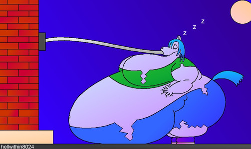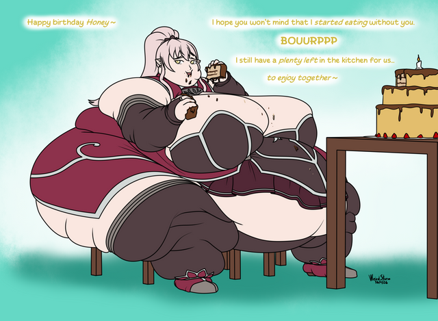 You should do a comic thing where, like, she starts out skinny and then eats and eats until she's all fat like that. 'Twould be interesting.