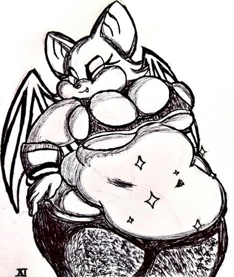 As much as I prefer normal Rouge, she looks quite sweet all fat and chubby. (I bet she secretly likes her new weight/look.) It's a wonder she can still get into that outfit. (I bet she can't get into those sports boots though.)
