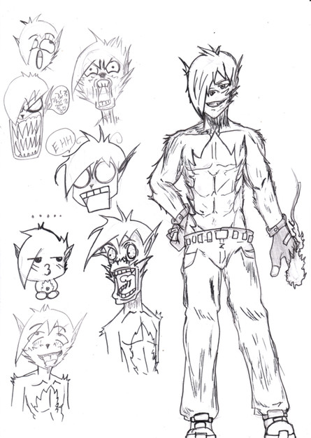Personality: Hmmm I'm nice. (He is pretty space and he has blank spot's in his memory cause there are some thing's he don't want to remember. He don't know how to ask for help so if you see him staring at something, just tap him on the shoulder and ask if his ok. And if you ask him if he was a girl or a boy he will say yes, and if you lead to the idea of him being a hermaphrodite he'll just say 'ok' or 'fine' and try to make you drop it. And he can't fight but he sure can take a hell of a beating. He really don't hate anything but he will say something when he don't like it, like people calling him a freak and stuff. And he puts him self away from people and Beatles is the only other person he hangs out with, besides his mom Yanaha.)