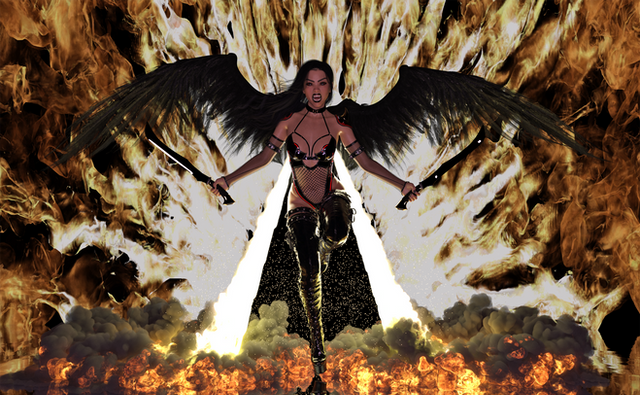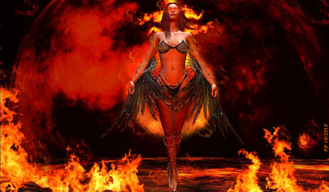 what a very nice masterpiece...it think i love the faces on fire behind the angel and i love the texture of the piece specially the angel's wings... as in wow!!!