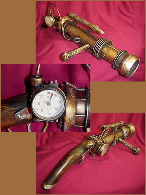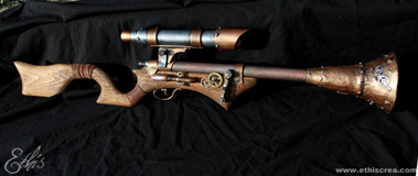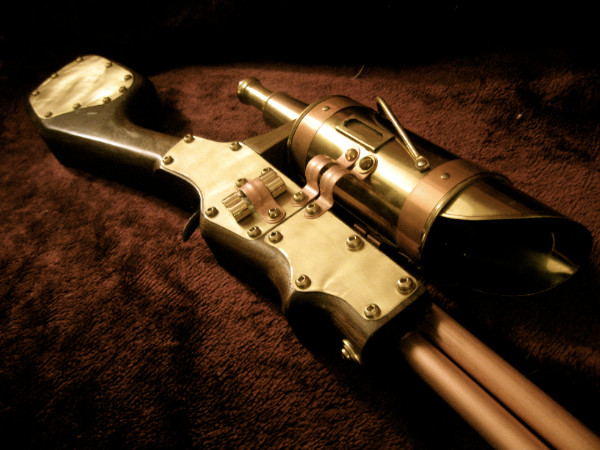 After putting Astor's Holy Sword online, I quickly figured I had more cool weapons about than just LARP weapons, so, here I am, following that line of thought; my first, best and so far only, home-made Steampunk rifle; the Valkyr Rifle.I've put some of details and 'background' info on this thing into two previous Deviations covering it; "'Valkyr' Rifle - Details" and "'Valkyr' Rifle - Overview" . However, as one can (hopefully) see, I've improved it after those photos were made, mainly the trigger area and the powersource. I pretty much consider it 'done' nowadays