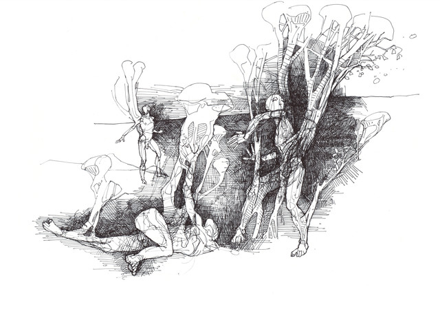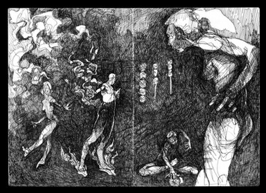 Over...Ink, collage, watercolor (and a lot of white gouache)