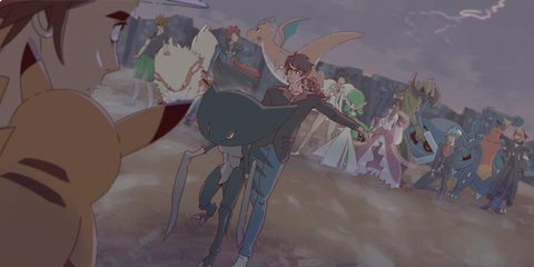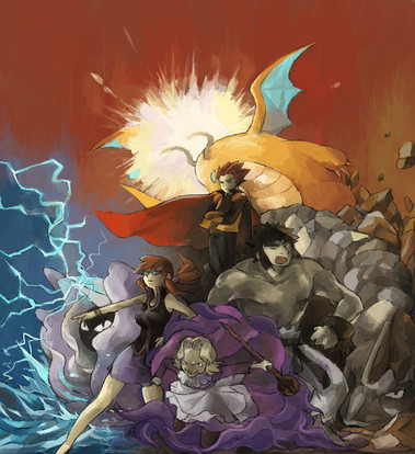 #ash #battle #blastoise #blue #charizard #cynthia #dawn #diantha #dragonite #elite4 #fanart #gardevoir #gold #lance #manga #may #metagross #pokemon #red #screentones #serena #starters #steven #stone #swampert #typhlosion #garchomp #torterra #volcarona #serperior #greninja