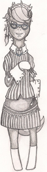 This is a picture I did on lined paper as you can probably tell on her shirt bit and on her skirt thing. I did my best to edit out all the lines that I could. I like this picture because it came together nicely. It started as a blank face because I was experimenting with hair styles and than it got out of control as I got bored and this was the outcome. I'm really happy with it though I still think it sucks. It was only an experiment after all.~Kitten