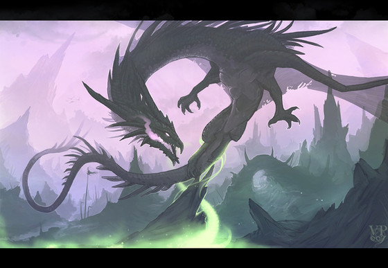 #creature #dragon #fantasy #illustration #landscape #sunset