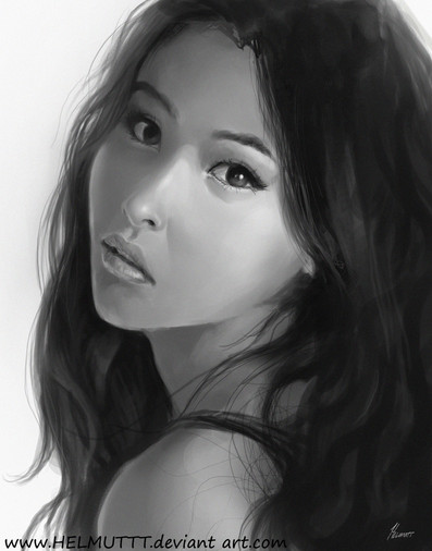 dude, thats freaking insane, looks real, the eyes an hair are just mental, did this take a long time? did you have a model? this is just freaking crazy!!