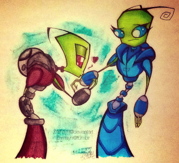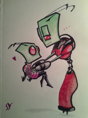 Tallest Red (on right) and Tallest Purple (on left) belong to Jhonen Vasquez.