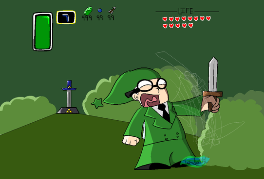 Zelda 1 for Famicom (or NES/ 8-bit nintendo) is so awesome game that I just had to make some fan art for it! (The name is a joke, but if you don't understand it, don't care.)Made with the master of art: PAINT! and those backgrounds are ripped from the game