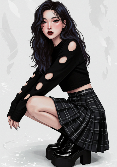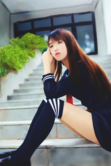 #study #asian #asiangirl #blackandwhite #digitalpainting #girl #illustration #longhair #photoshop #skirt #stripes