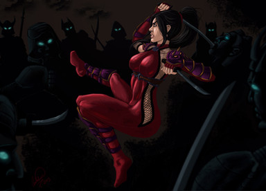 Damn this awesome/outstanding. I love ninjas. But this kunoichi is sexy! Her pose brings her background very well, and also clothes. Love the background. The line art is 'perfection' and amazing color you did. Her outfit is great too! One word to describe this art you put your work on this is... *EPIC*.