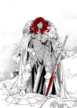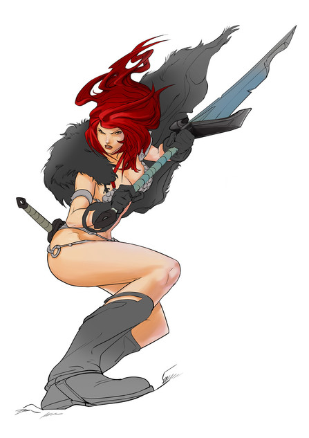 I love the movement in this picture and the way her clothes and weapons seem to be folllowing gracefully along with her. Also the coloring on her skin and clothes is great, it looks like something you'd see in a comic book.