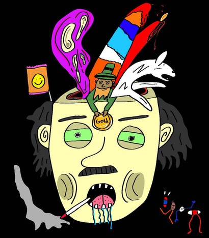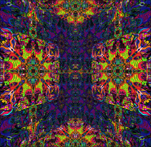 This is done similar to a style of a native painter in Canada.His son lives down the street.The name is Norval Morriseau.His works are different in content and composition but the image within an image is prevalent in all of his works.You might like his work.Check him out on the net.