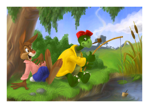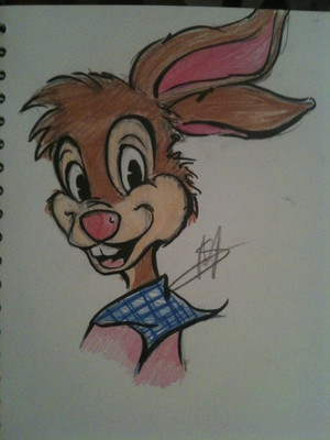 I finally had the chance to watch Disney's 'the Song of the South' today, and I loved it! I had to draw ol' Br'er Rabbit right away.This is about the first time I added some kind of background to the image, I think it looks much more interesting this way. It's done in aquarel paint and colored pencils.